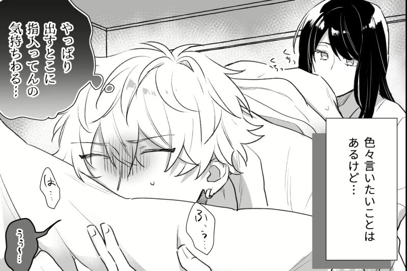 女性に押し倒され、耳を舐められ、言葉で煽られながら堕とされていく。