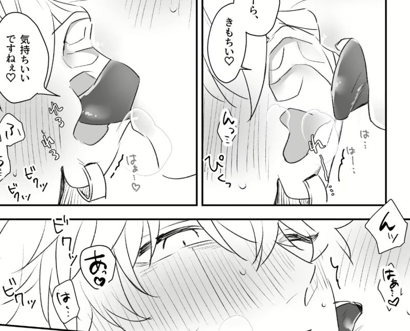 耳舐め・手コキ・アナル責めが同時に襲いかかる快感に、男子の体は震えていきます。
